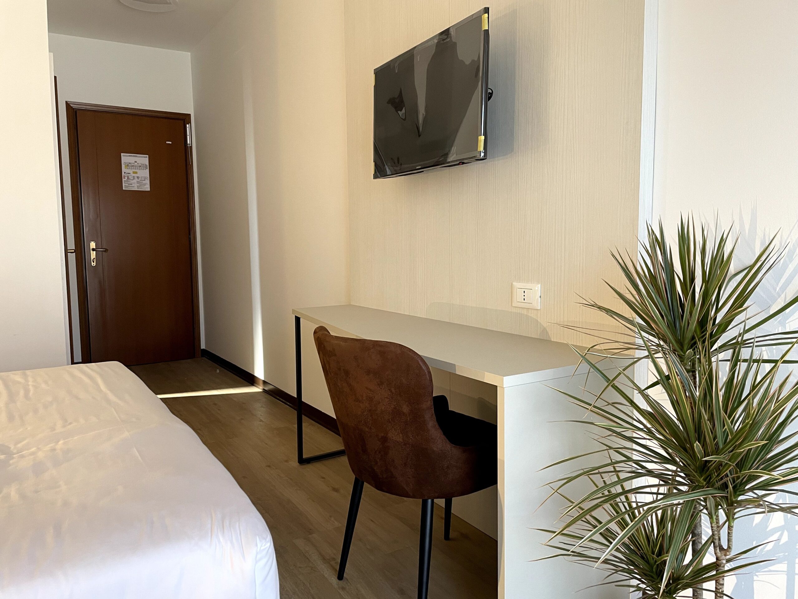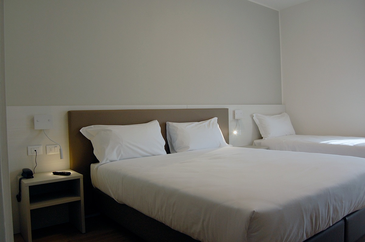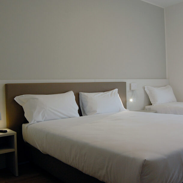 A room of no less than 30 square metres offering a living room with a sofa that can become a double bed if necessary, two balconies and a windowed bathroom, it is the ideal solution for large families or for those seeking privacy with the possibility of dividing the living room from the bedroom.